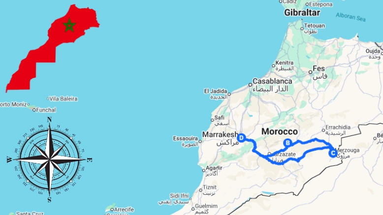 Map of 3 Days Marrakech Desert Tour