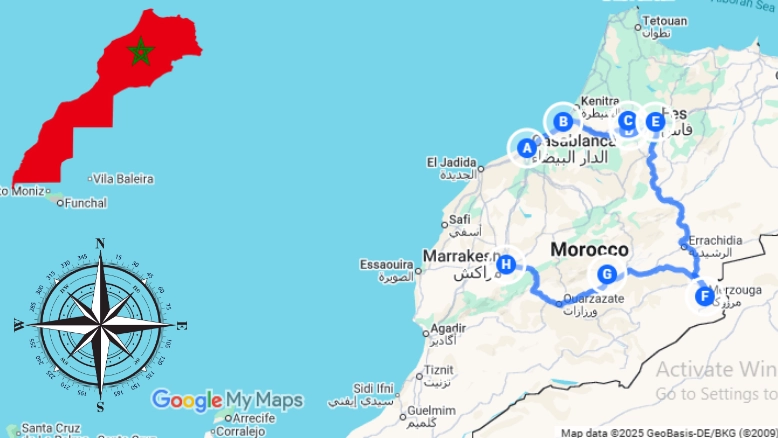 Map of Essential 6 Day Casablanca Desert Tour